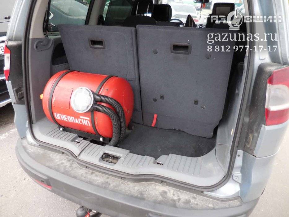 8. Рекомендованный баллон: цилиндрический баллон объемом 50л в багажное отделение за третьим рядом сидений на сложно-составную раму.