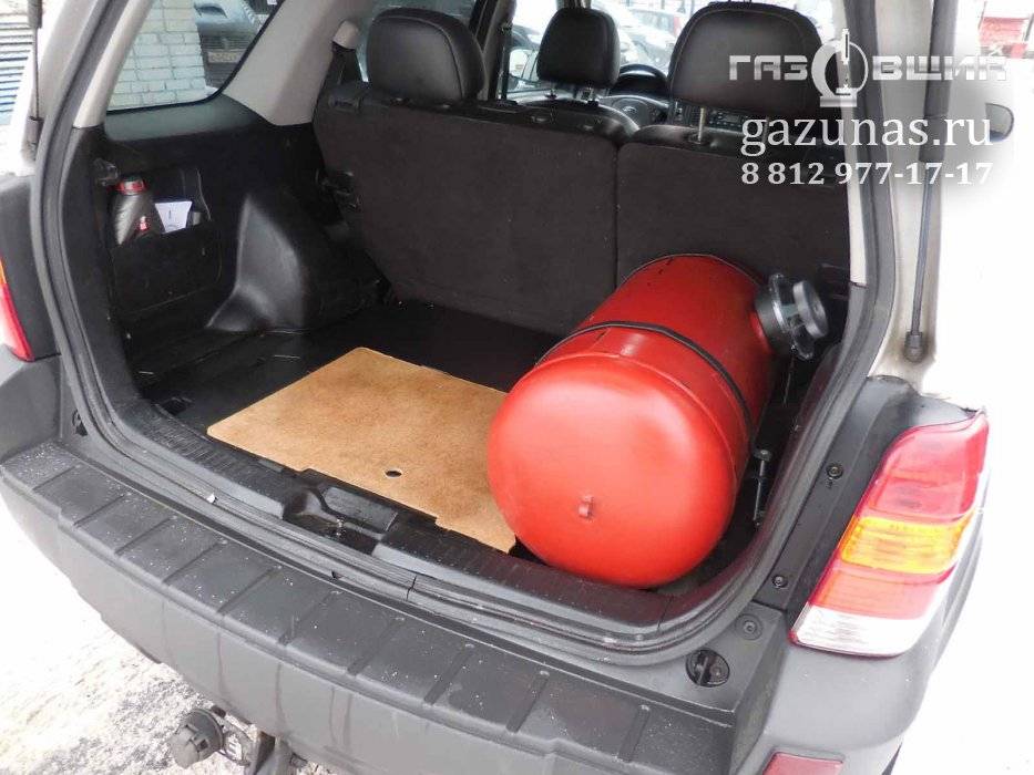 б) цилиндрический баллон объемом до 90л. в багажное отделение.