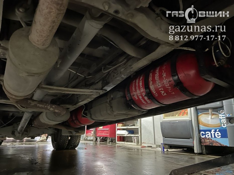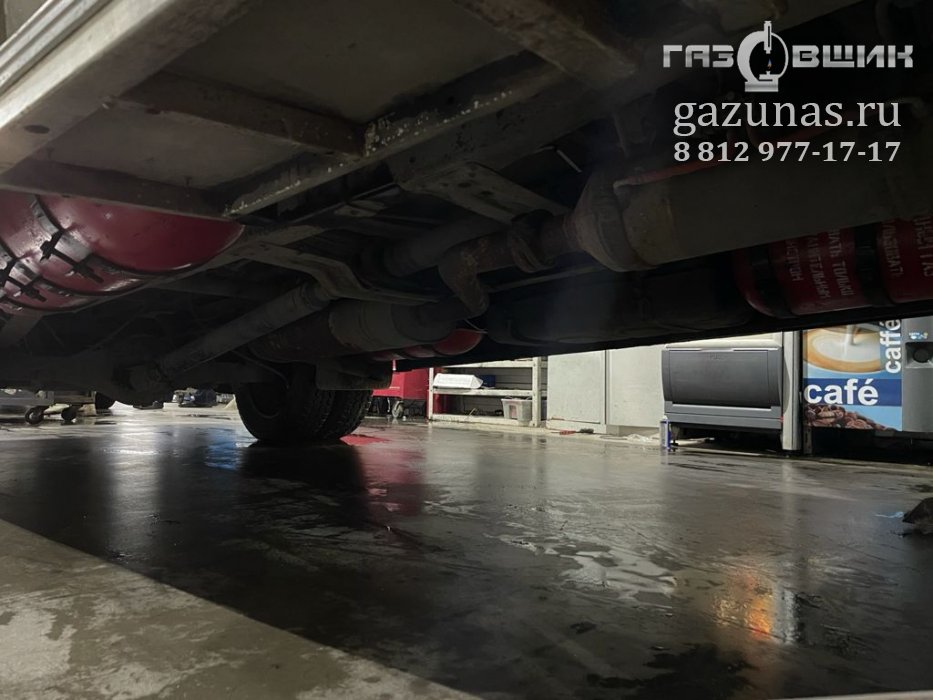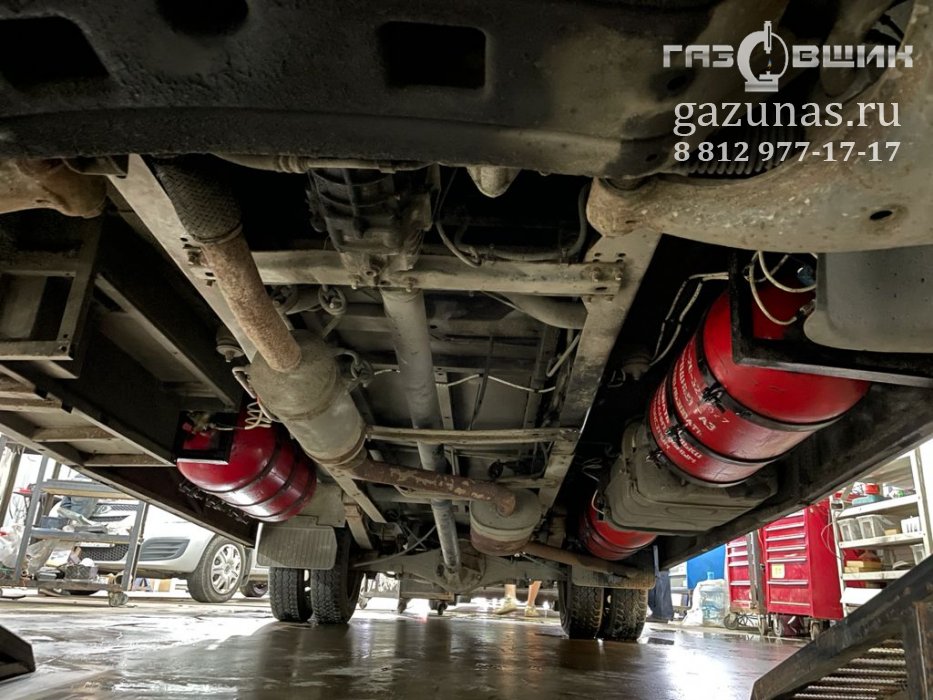 7. Установка баллонов: под днищем маршрутного такси расположено 3 газовых баллона (120л., 80л., 65л.), общим объёмом 265л. (Запас метана 53 Нм3)