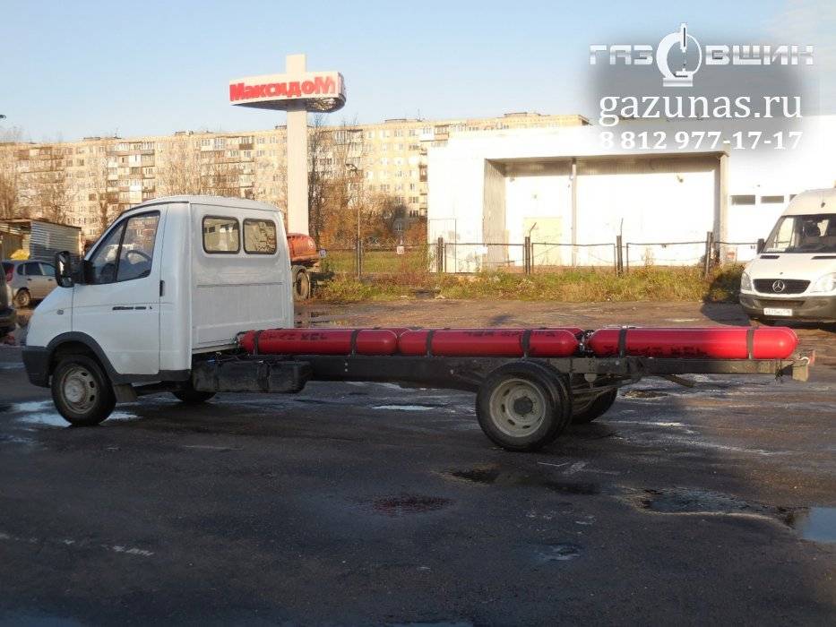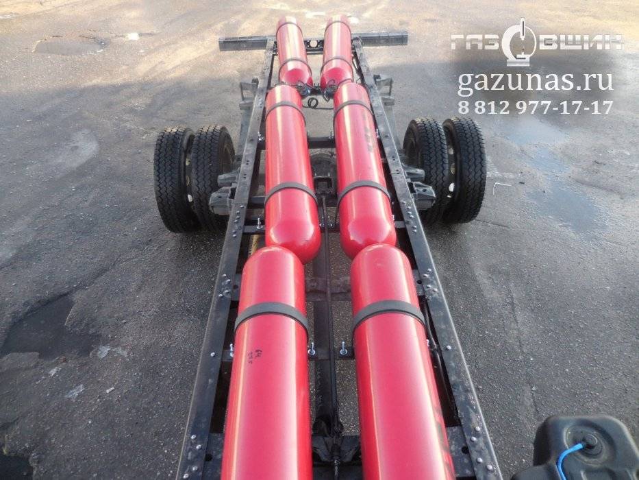 6. рекомендованный баллон: 6 цилиндрических баллонов объемом по 50л, общий объём 300л. (заправочная емкость 70 кубометров сжатого природного газа) под борт автомобиля