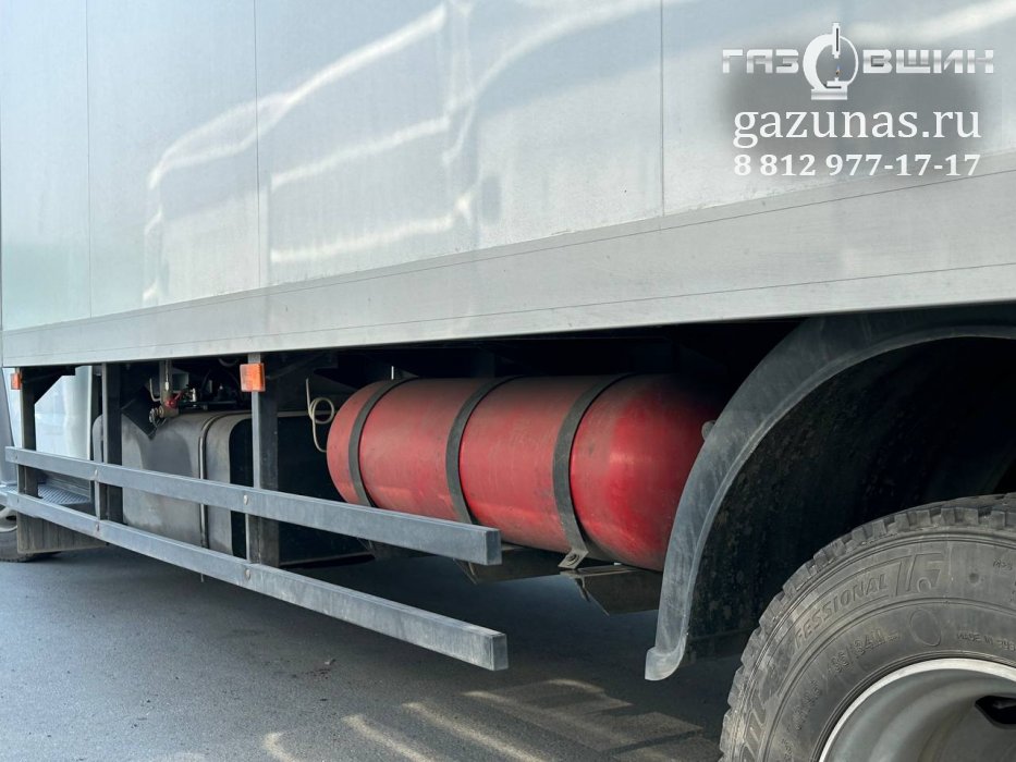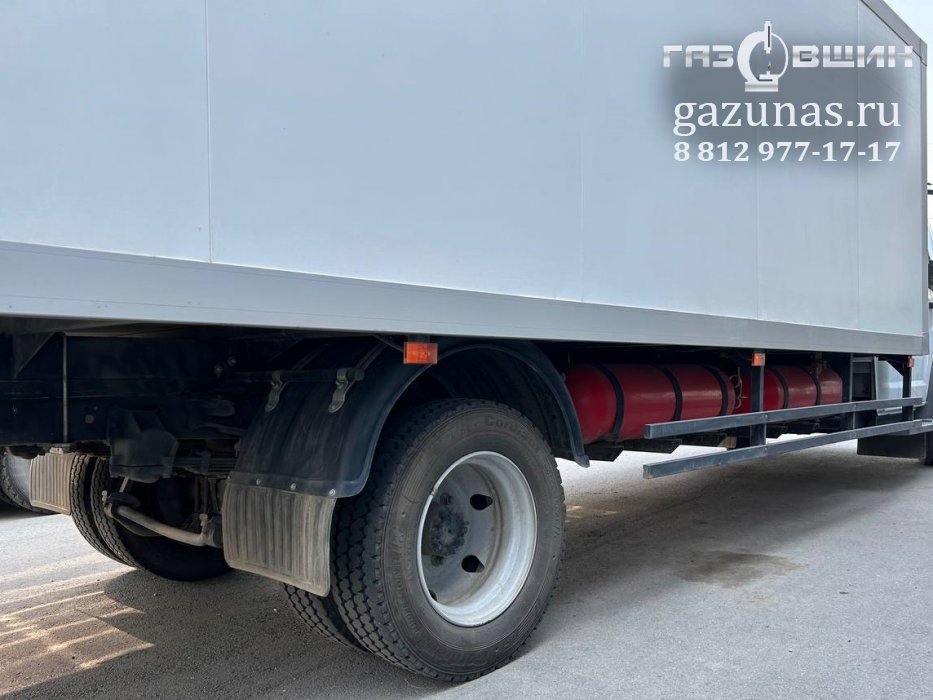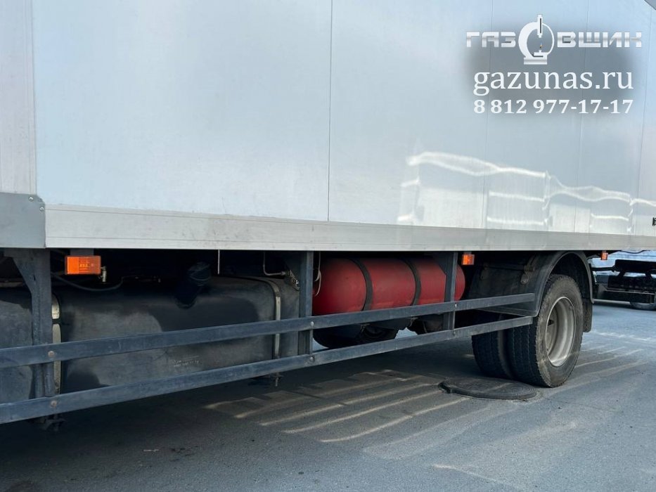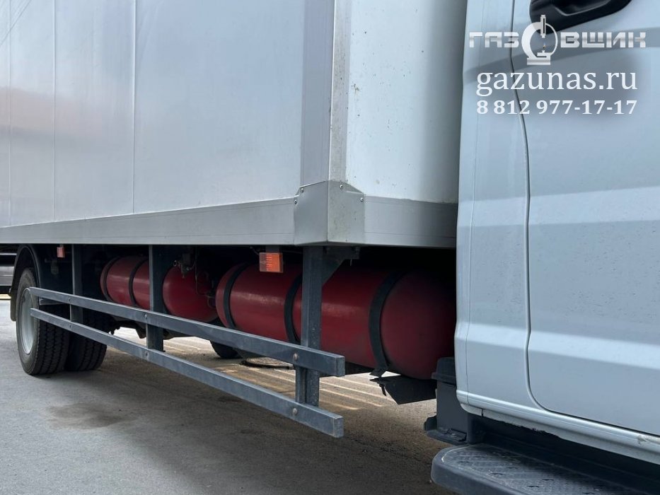 3 газовых баллона CNG-1 общим объёмом 300л., слева и справа на раму автомобиля (заправочная емкость 66 Нм3).