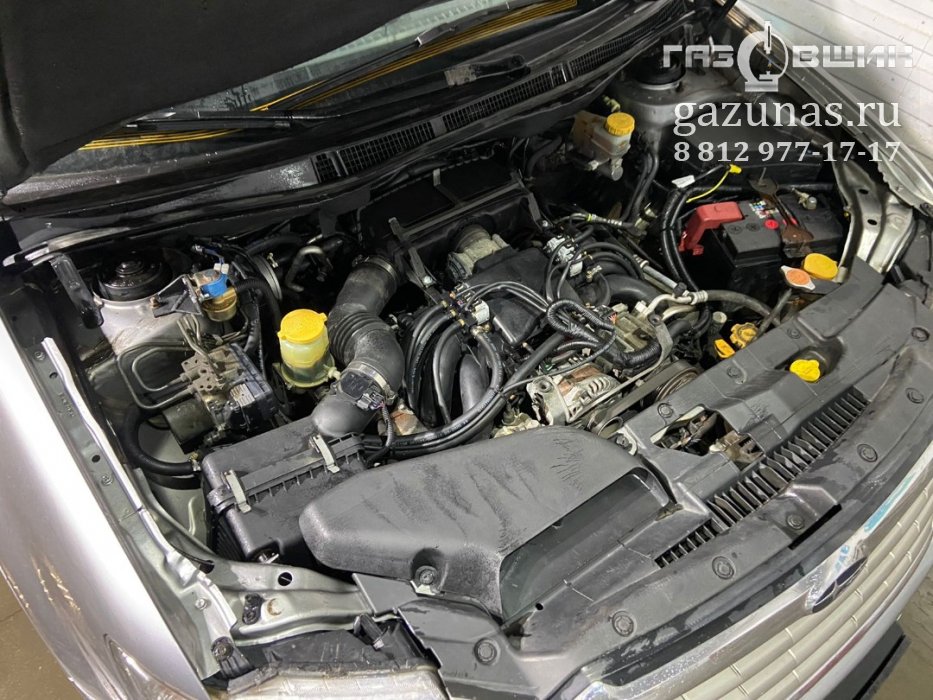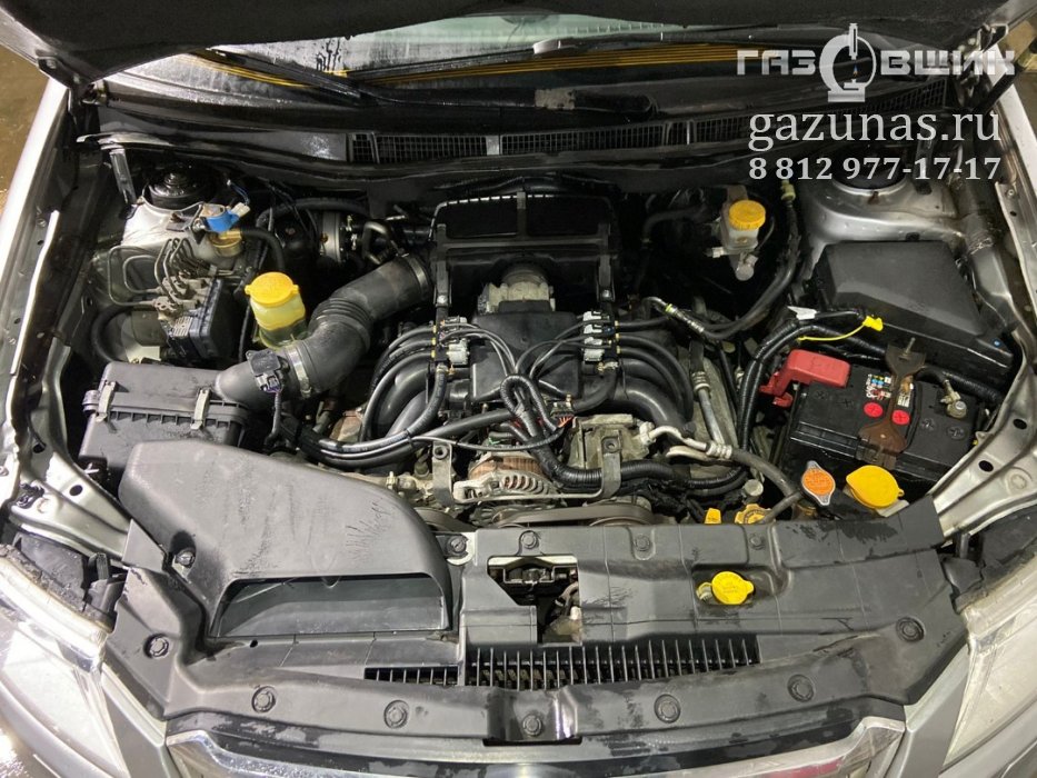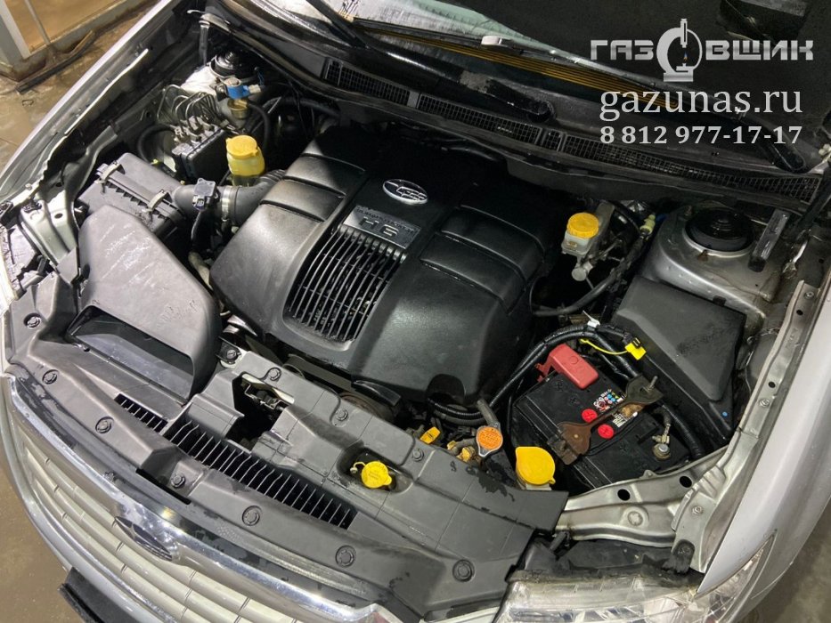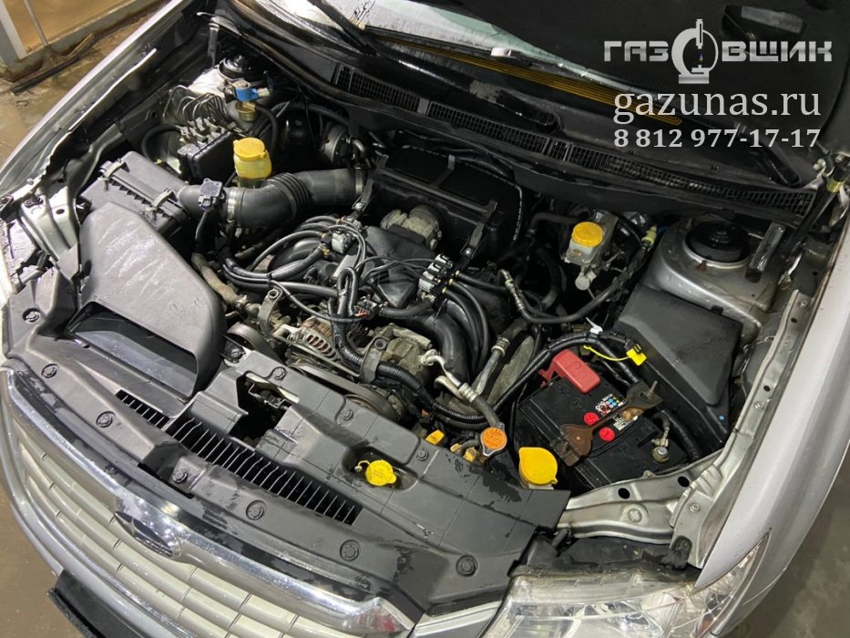 12. Особенности установки: на автомобиле установлен оппозитный двигатель, в котором угол между рядами цилиндров составляет 180 градусов, а противостоящие поршни двигаются зеркально по отношению друг к другу, из-за этого при установка ГБО, шланги от обычной рядной газовой рампы будут слишком длинные поскольку будут расходиться к разным краям двигателя, к местам врезки во впускной коллектор, это может приводить к дерганью при переключении между режимами, поэтому на такой тип двигателей требуется установка специального комплекта, включающего в себя скоростные форсунки с разнесенной газовой рампой, которая позволит обеспечить стабильную работу двигателя во всем диапазоне.