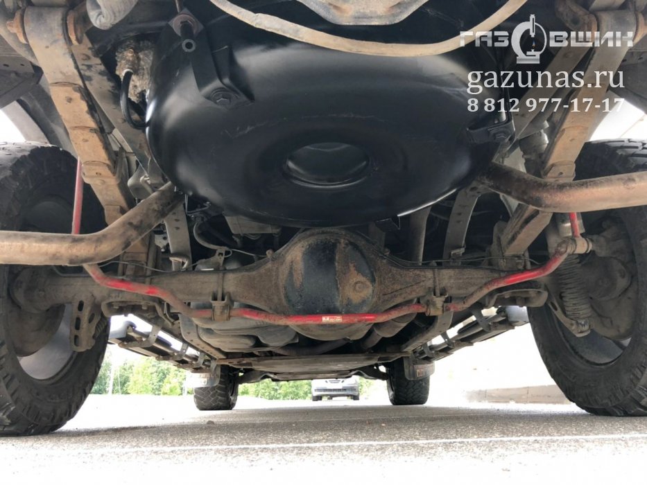 а) два цилиндрических баллона по 90 литров вместо запасного колеса (итоговая емкость 180л).