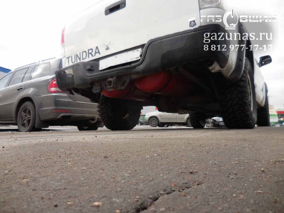12. Особенности установки: сложностей нет кроме того, что это большой автомобиль с восьми цилиндровым двигателем. при установке двух баллонов по 90 литров вместо запасного колеса задняя часть выхлопной трубы переносится вперед и в бок.
