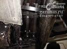 б) цилиндрический баллон объемом 50л снизу в заднюю секцию рамы вместо задней банки глушителя (задняя банка глушителя переносится вперед и вбок).