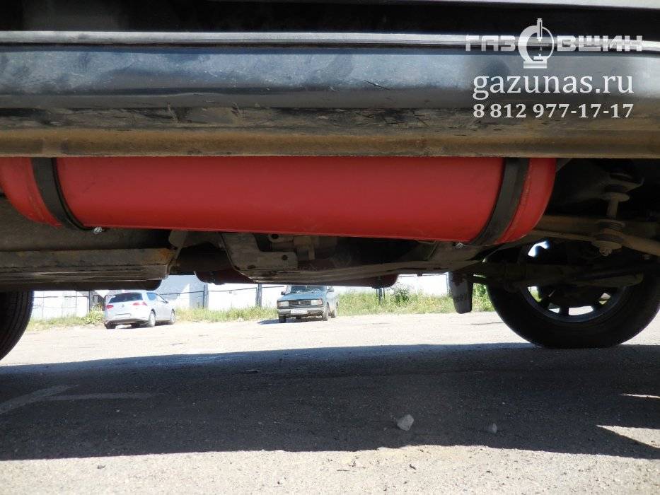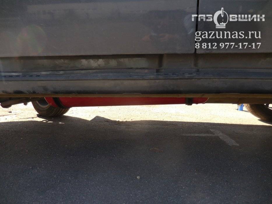 а) цилиндрический баллон объемом 90л вдоль кузова с правой стороны в багажном отделении.