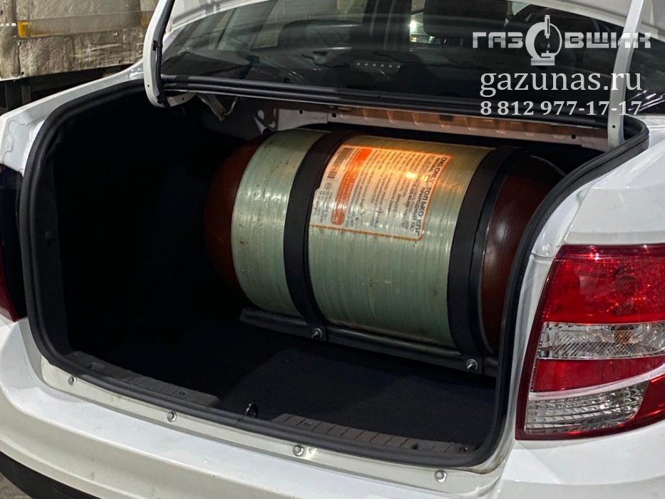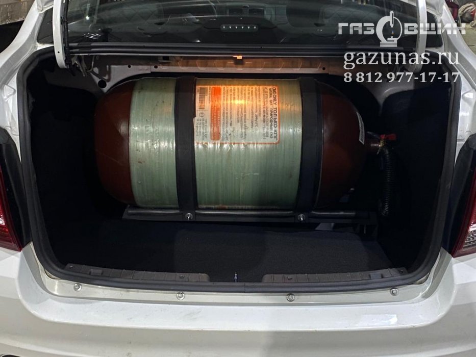 8. Рекомендованный баллон: цилиндрический баллон объемом 80л (заправочная емкость около 20 кубометров сжатого природного газа) на сложно-составной раме в багажном отделении вдоль заднего ряда сидений.