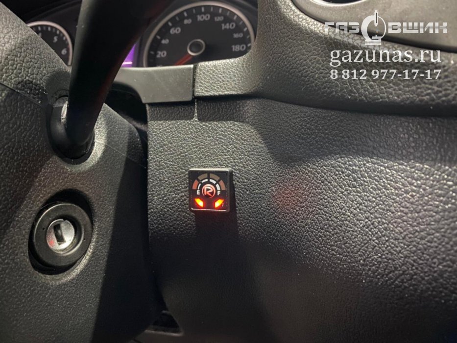 11. Показания датчика уровня выводятся на кнопку переключения режимов работы - газ\бензин