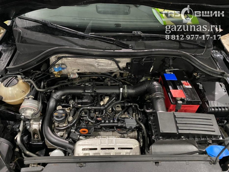 12. Особенности установки: двигатель с непосредственный впрыском топлива в камеру сгорания (TSI), что подразумевает подбор специального комплекта ГБО, разработанный специально для такого двигателя, в остальном вполне несложный автомобиль.