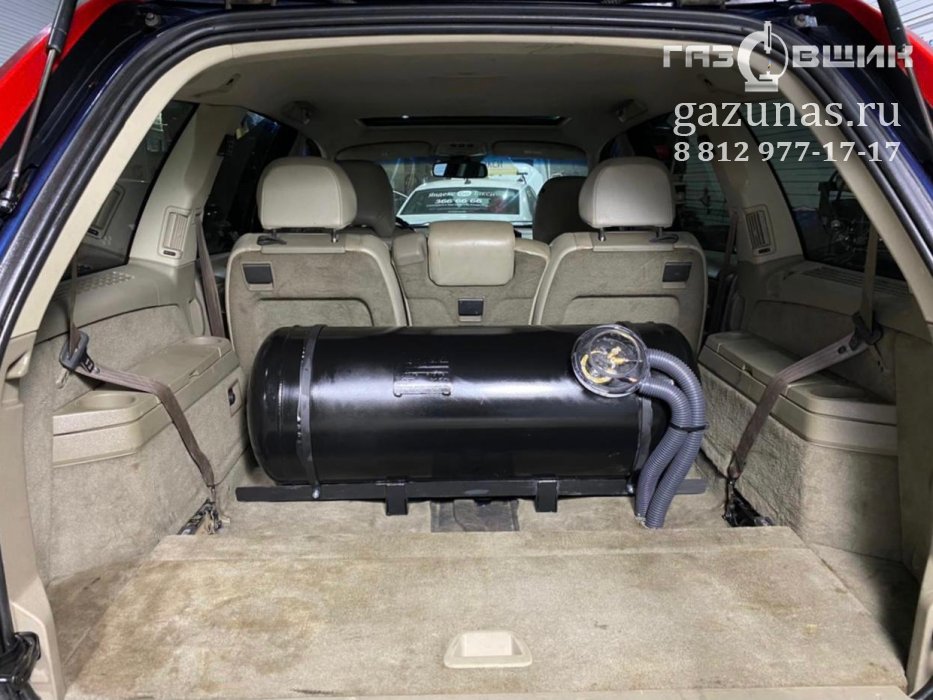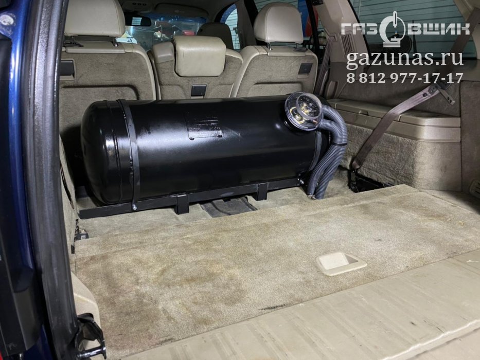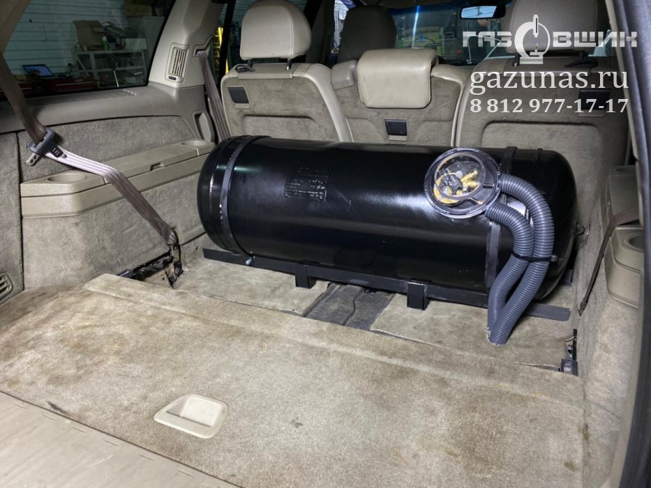 12. Особенности установки: особых сложностей не обнаружено, по просьбе клиента в данном автомобиле был установлен цилиндрический баллон объемом 105л с демонтажом третьего ряда сидений.